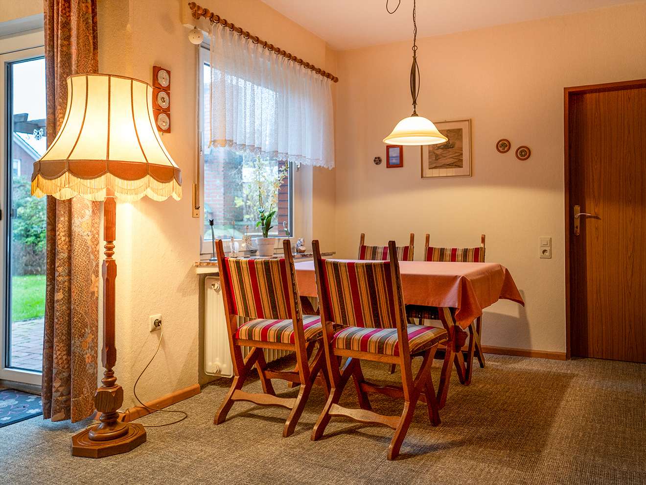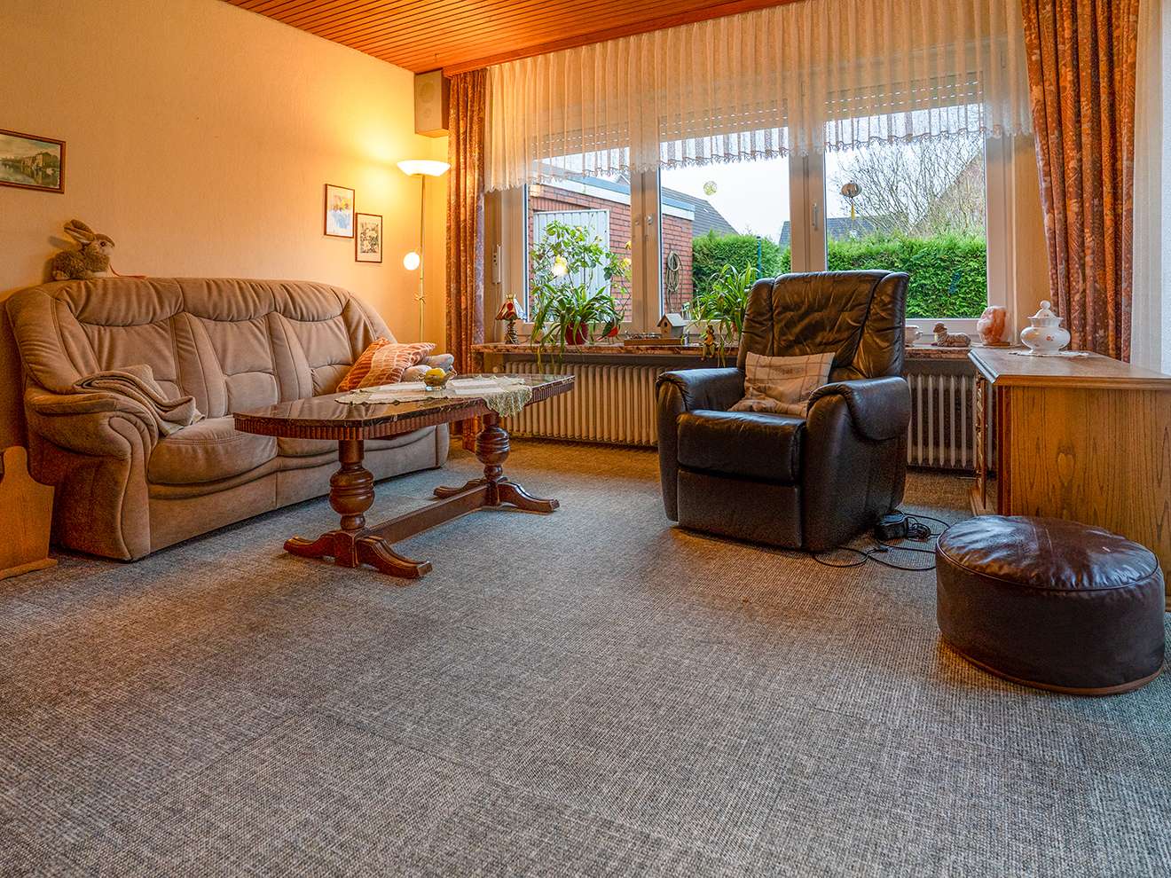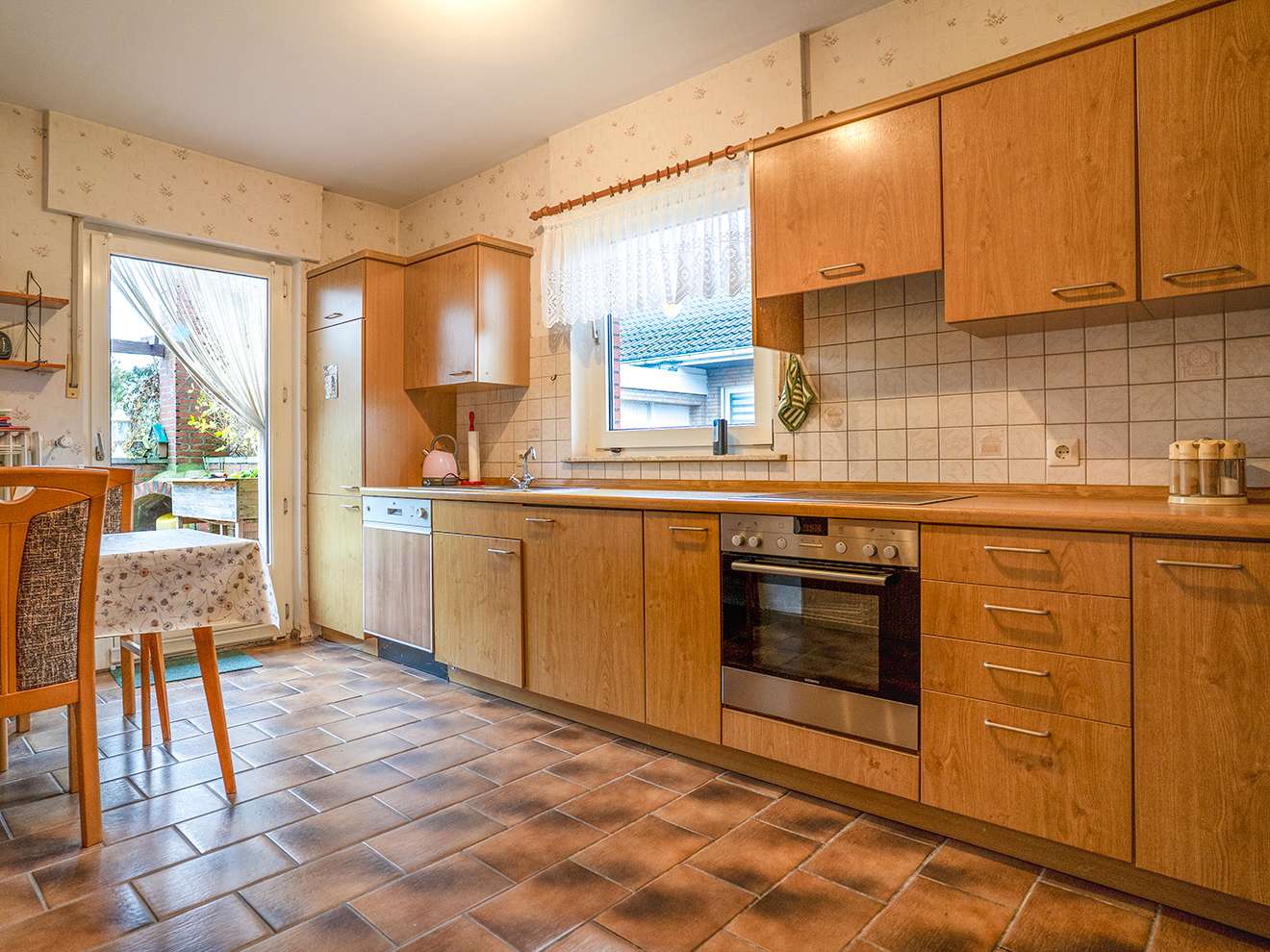 Dieses einladende Einfamilienhaus überzeugt durch eine durchdachte Raumaufteilung, großzügige Wohnbereiche und eine ruhige, familienfreundliche Lage. Bereits im Erdgeschoss öffnet sich die Diele zu einem hellen und weitläufigen Wohn- und Essbereich, der dank großer Fensterflächen einen wunderschönen Blick auf die Terrasse und den Garten ermöglicht. Die angrenzende Küche ist direkt mit dem Wohnbereich verbunden und bietet ausreichend Platz für eine gemütliche Frühstücksecke.
