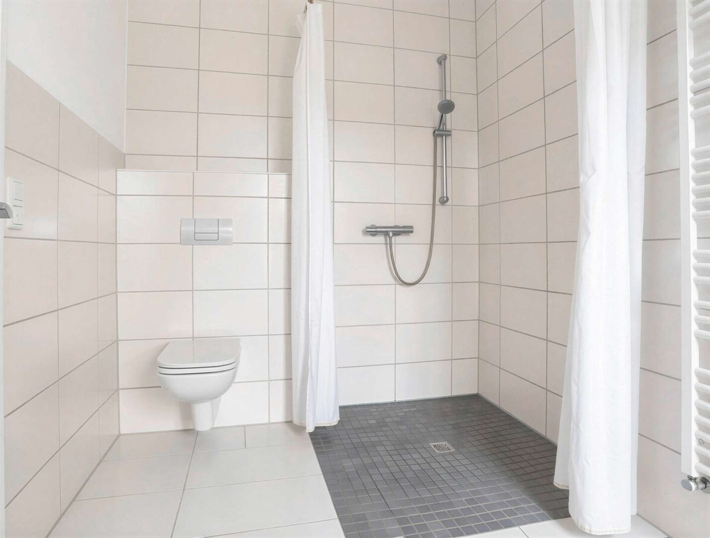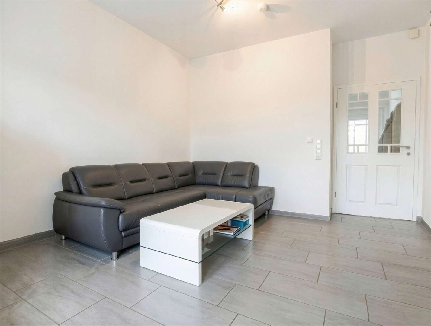 Beim Betreten des Hauses empfängt Sie ein einladender, kleiner Flur, der einen ersten Eindruck von der angenehmen Wohnqualität vermittelt. Ebenerdiges Wohnen ist hier problemlos möglich, da sich alle wesentlichen Räume des täglichen Bedarfs im Erdgeschoss befinden. Zur rechten Seite befindet sich ein großzügiges Tageslichtbad, ausgestattet mit einer großen, ebenerdigen Dusche. Hier stehen zudem Anschlüsse für Waschmaschine und Trockner zur Verfügung, sodass Funktionalität und Komfort harmonisch miteinander verbunden sind. Gegenüber dem Bad liegt ein weiteres Zimmer, das sich ideal als Schlafzimmer, Homeoffice oder praktischer Abstellraum nutzen lässt.
