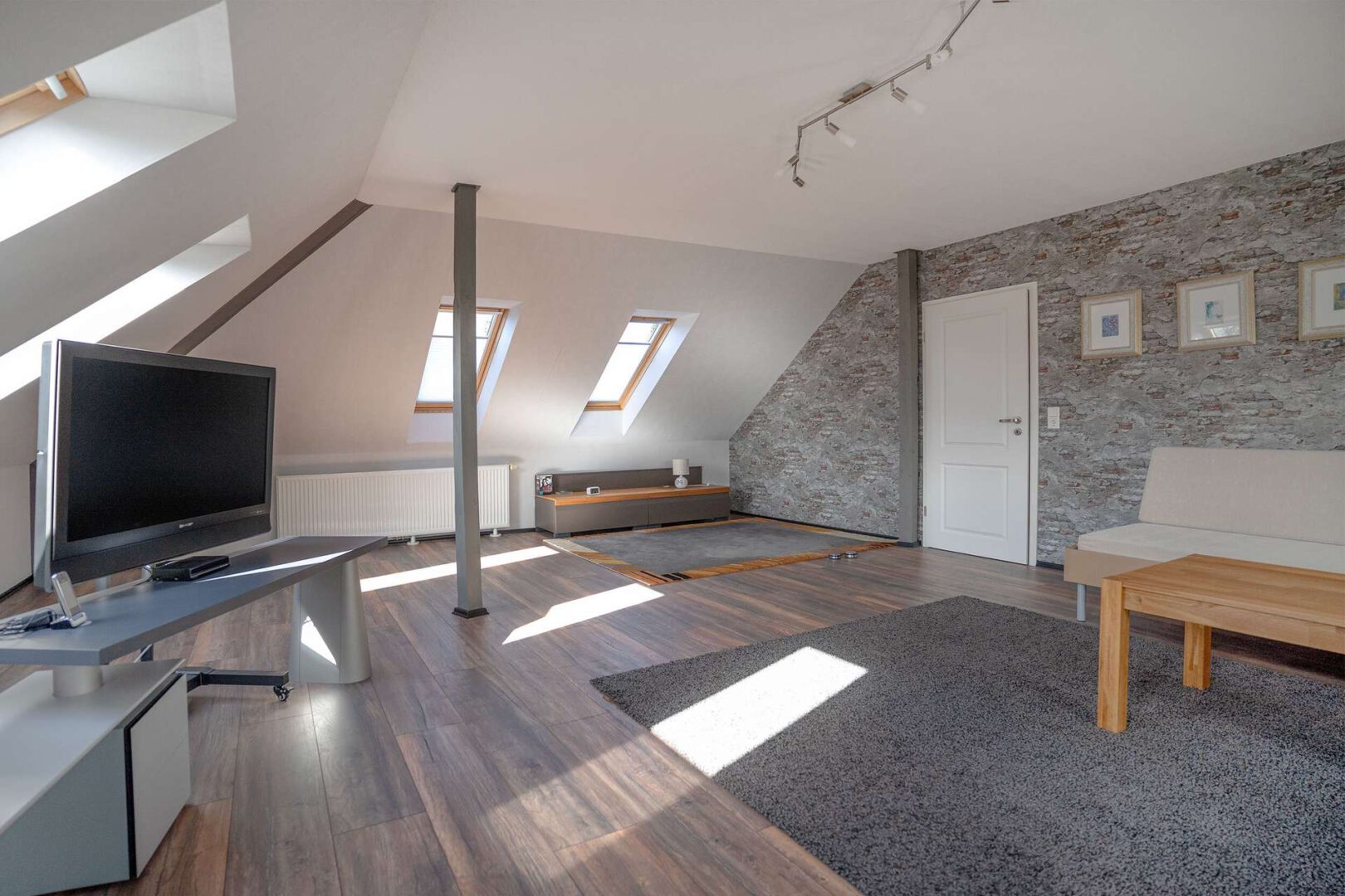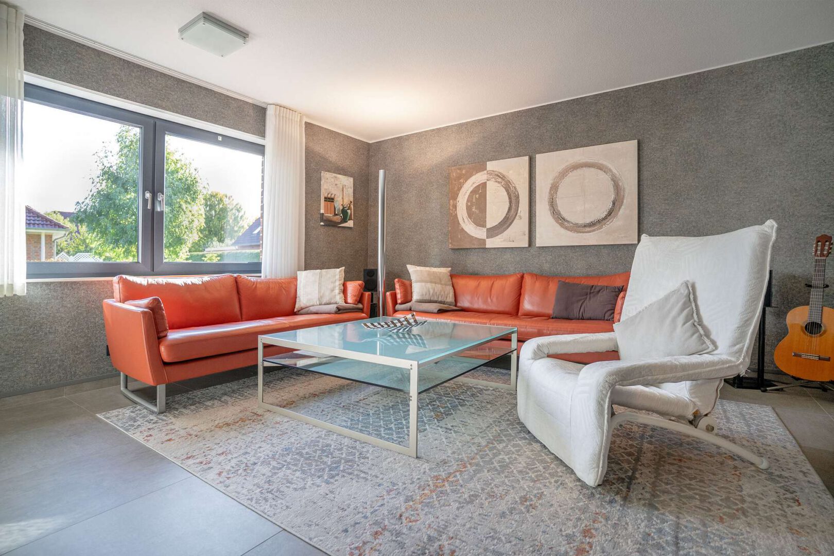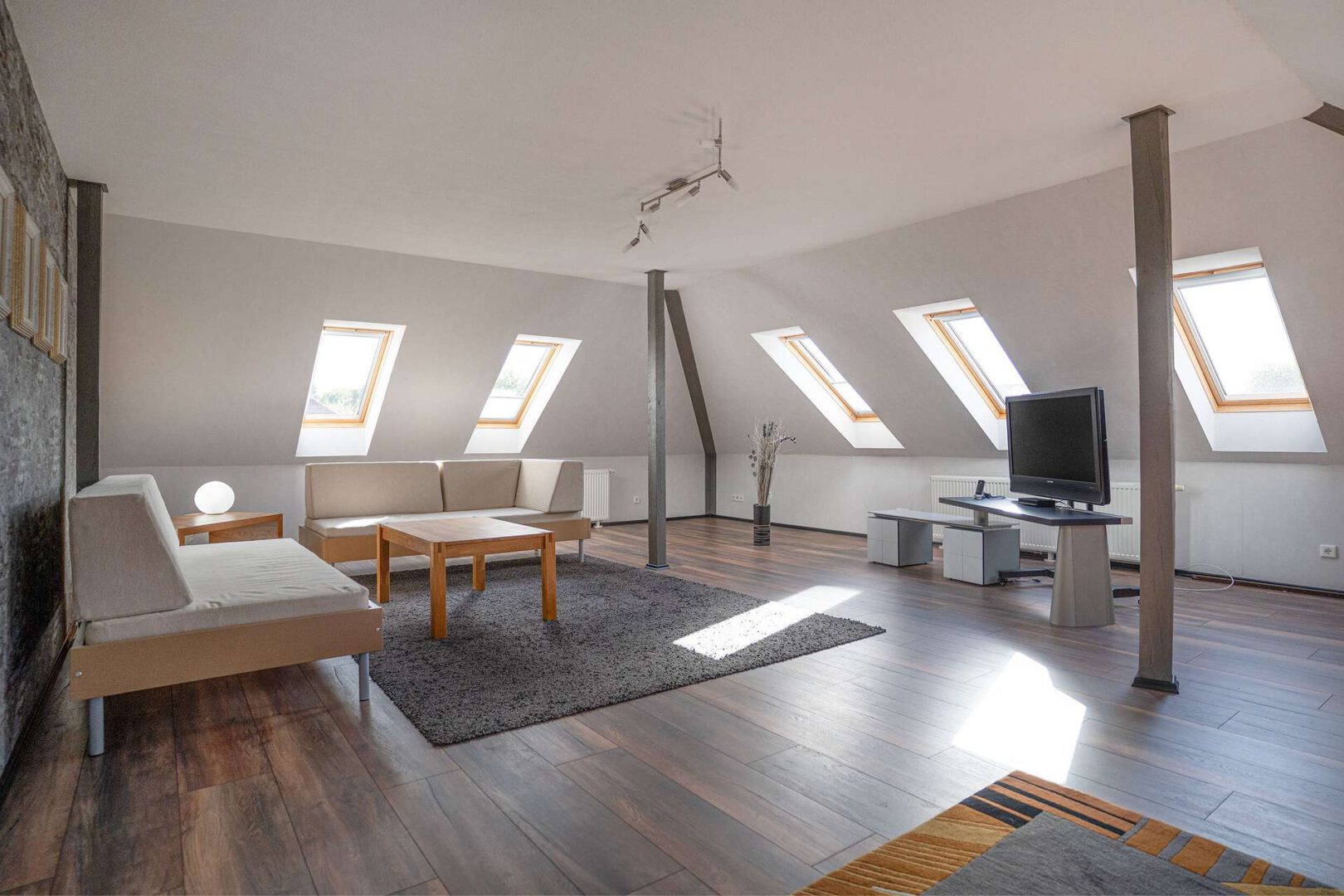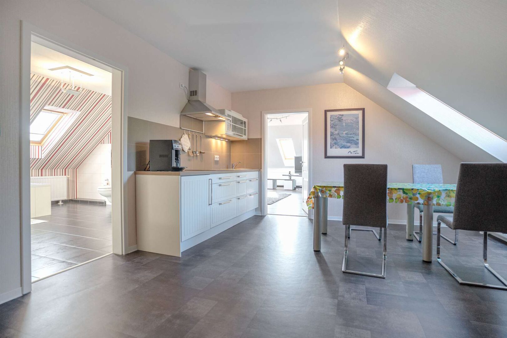 Die Terrasse mit Glasüberdachung, seitlichen Sonnenschutzrollos und Markise lädt zu entspannten Stunden im Freien ein. Natürlich darf auch ein Gartenhaus nicht fehlen. Vom Hauswirtschaftsraum gelangt man direkt in die 35 m² große Garage, die mit praktischen Wandschränken und einer Wallbox ausgestattet ist. Eine Treppe neben dem Eingangsbereich führt in das ausgebaute Dachgeschoss, das sich auch als eigenständige Wohneinheit oder für Gäste nutzen lässt. Hier erwarten Sie ein lichtdurchflutetes Wohnzimmer mit sieben Velux-Dachfenstern und neuem Laminatboden, ein etwa 22 m² großes Schlafzimmer, ein Abstellraum sowie ein Badezimmer mit Wanne, Dusche und einem separaten Bereich für Brennwerttherme und Warmwasserspeicher.
