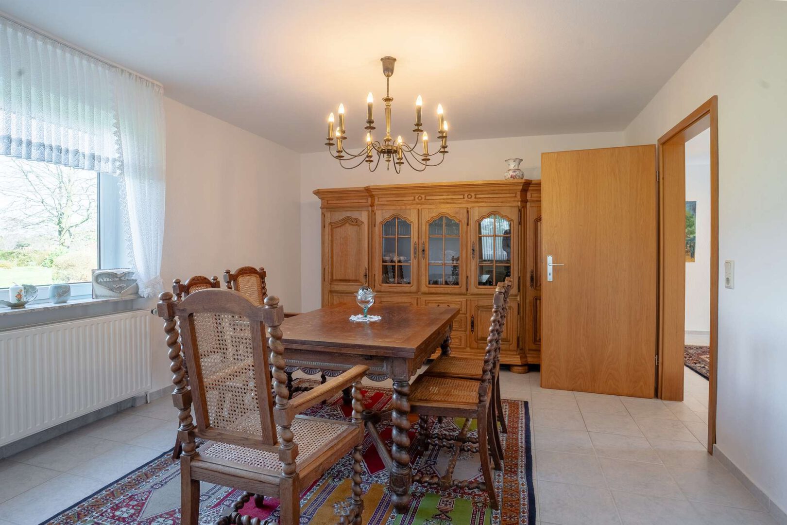 Dieses besondere Anwesen vereint Großzügigkeit, Ruhe und naturnahes Wohnen in einer seltenen Form. Eingebettet in eine weitläufige, grüne Umgebung und erreichbar über eine lange Auffahrt, eröffnet sich hier ein Rückzugsort, der Privatsphäre und Lebensqualität auf beeindruckende Weise miteinander verbindet. Auf einem 13.724 m² großen Grundstück mit Weidefläche erstreckt sich das im Jahr 1960 errichtete und 2001 kernsanierte Wohnhaus mit einer Gesamtwohnfläche von rund 310 m². Das Haus bietet zwei Wohneinheiten und eröffnet damit vielfältige Nutzungsmöglichkeiten – sei es für mehrere Generationen, zur Kombination von Wohnen und Vermietung oder als großzügiges Zuhause mit flexiblen Lebensbereichen.