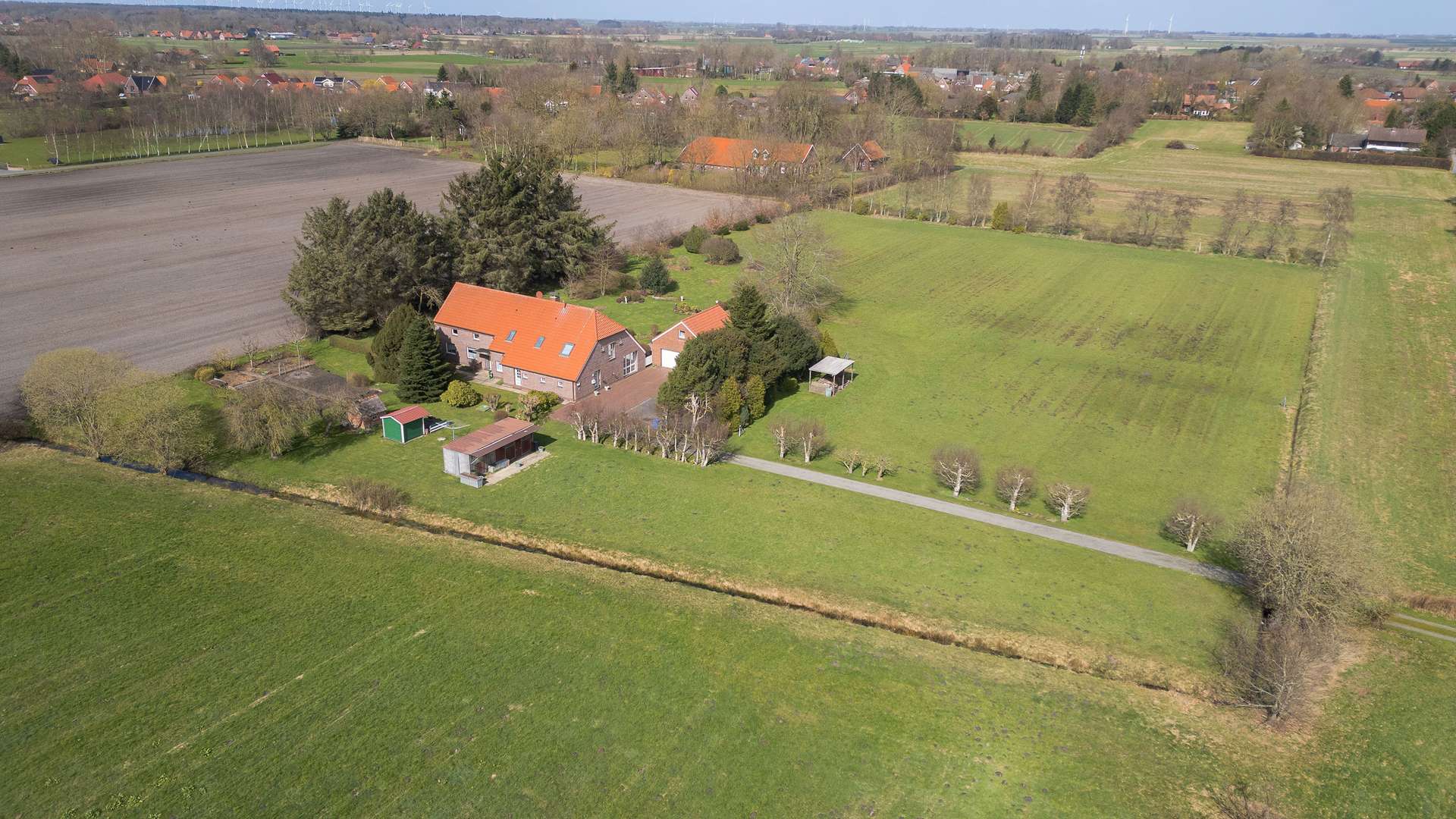 Das weitläufige Grundstück präsentiert sich gepflegt und eröffnet vielfältige Nutzungsmöglichkeiten. Der von Gärtnern und Landschaftgärtner angelegte pflegeleichte Garten mit ausgewählter Bepflanzung erfreut zu jeder Jahreszeit. Die umgebenden Grün- und Weideflächen verleihen der Immobilie eine besondere Ausstrahlung und machen sie zu einem Ort, an dem Ruhe, Natur und Freiraum in Einklang stehen. Ein Anwesen, das Raum für individuelle Lebensentwürfe bietet und gleichzeitig durch seine Lage und Struktur eine seltene Gelegenheit darstellt.