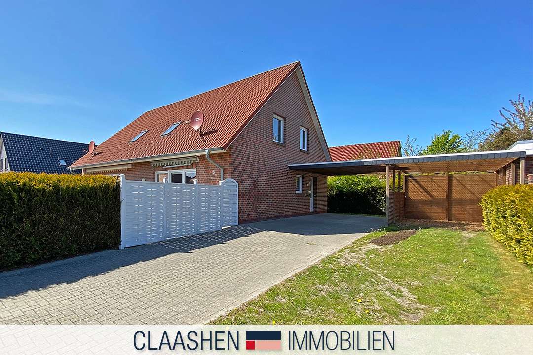 Bei dieser gepflegten Haushälfte erwartet Sie ein durchdachter Wohnkomfort auf allen Ebenen. Die Haushälfte verfügt auf etwa 385 m² Grundstücksfläche über ein Doppelcarport sowie einen pflegeleichten Gartenanteil, welcher ideal nach Süden ausgerichtet ist. Der Hauseingang befindet sich unter dem Carport, wodurch Sie stets trockenen Fußes in die Wohnräume gelangen.