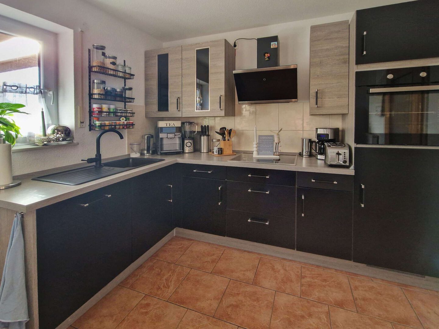 Begrüßt werden Sie von einer Diele, welche Sie in alle Räumlichkeiten des Erdgeschosses führt. Zu Ihrer Rechten schließt sich direkt das Badezimmer dieser Etage an. Dieses ist zeitlos hell gefliest und mit einer Dusche, einem WC und einem Waschbecken komfortabel ausgestattet. Ein Waschmaschinenanschluss befindet sich ein paar Schritte weiter im Hauswirtschaftsraum, welcher zudem auch Platz Trockner, Regale o. Ä. bietet. Die Küche ist bereits mit einer modernen Einbauküche ausgestattet. Ein kleiner Essbereich lässt sich ebenfalls problemlos einrichten.