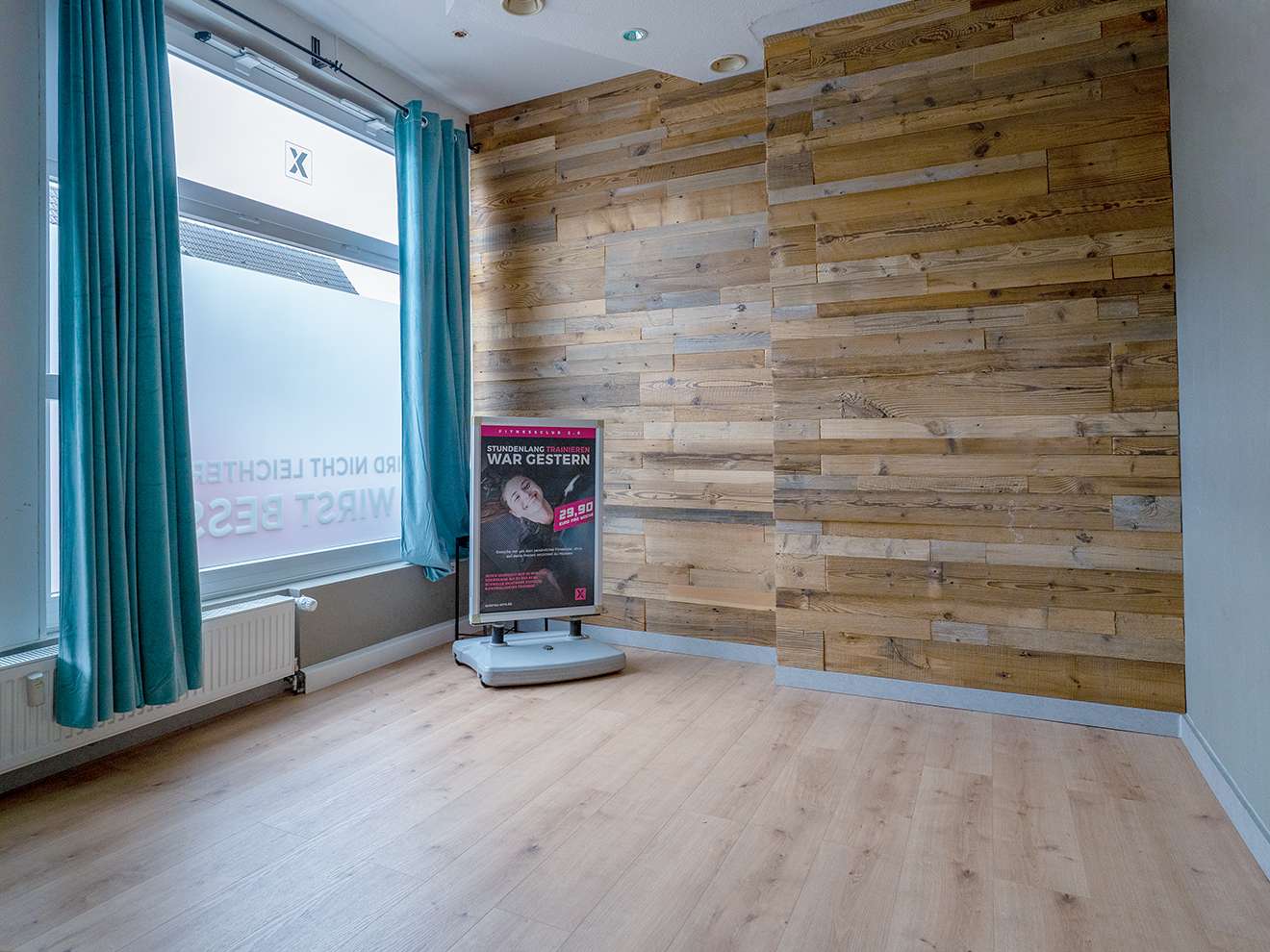 Die weitere Raumaufteilung ist durchdacht und flexibel: Aktuell ist die Fläche mit zwei Umkleidekabinen sowie zwei separaten Duschbereichen ausgestattet – eine ideale Ausgangsbasis insbesondere für Betriebe aus den Bereichen Fitness, Gesundheit, Kosmetik oder Therapie. Ergänzt wird das Raumangebot durch ein separates WC sowie einen praktischen Abstell- bzw. Technikraum, in dem sich auch eine kleine Küchenzeile befindet.
