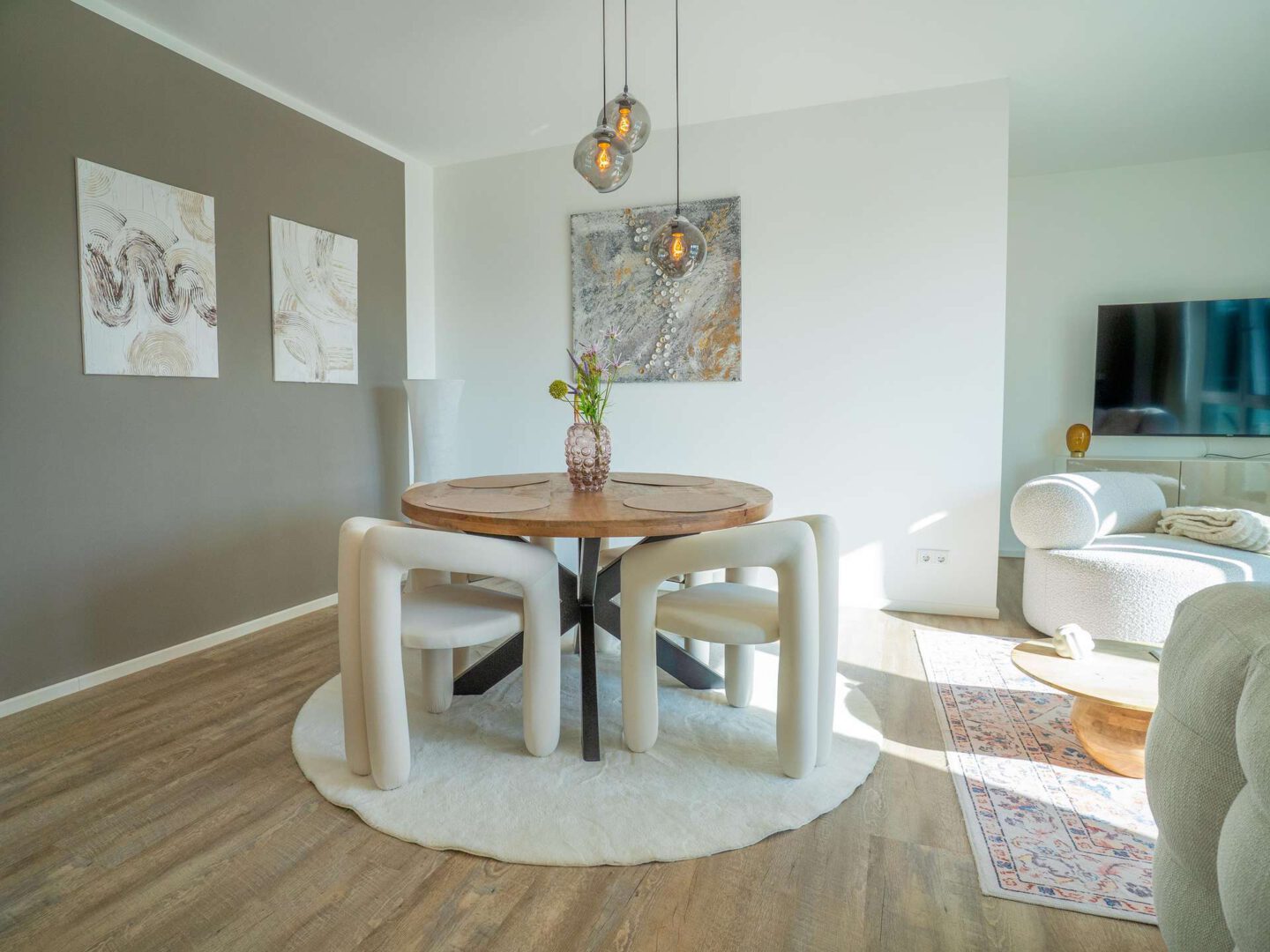 Diese attraktive Wohnung im ersten Obergeschoss überzeugt durch eine durchdachte Raumaufteilung, helle Wohnräume und eine gepflegte Ausstattung. Bereits beim Betreten empfängt Sie ein großzügiger Wohn- und Essbereich, der das Herzstück der Wohnung bildet. Hier finden sowohl eine gemütliche Sofaecke als auch eine einladende Essecke ihren Platz. Die integrierte Einbauküche ist modern ausgestattet und fügt sich harmonisch in den Wohnbereich ein. Sie bietet eine funktionale und stilvolle Lösung für den Alltag und lässt hinsichtlich Komfort und Ausstattung keine Wünsche offen.
