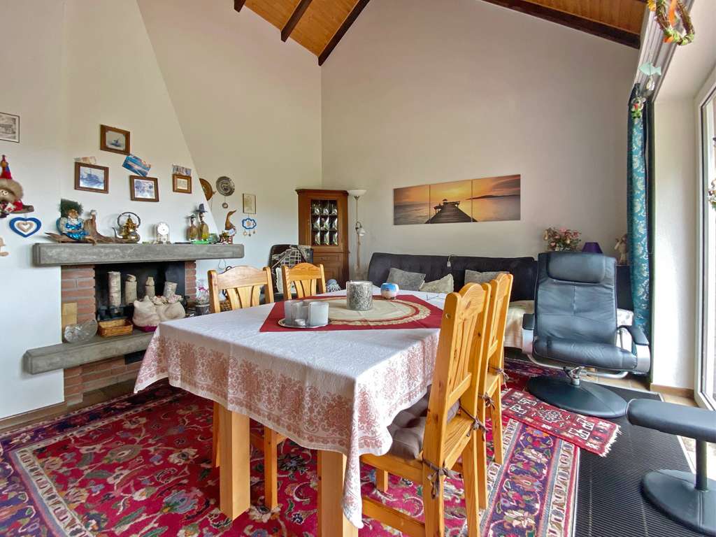 Der helle und geräumige Wohnbereich mit offenem Kaminofen lädt zum Verweilen ein und bietet Zugang zum Schlafzimmer sowie über eine Leiter zu einer gemütlichen Galerie. Von hier aus gelangen Sie auf die süd-westlich gelegene Terrasse mit angrenzendem Garten – perfekt, um entspannte Stunden in der Sonne zu genießen.
