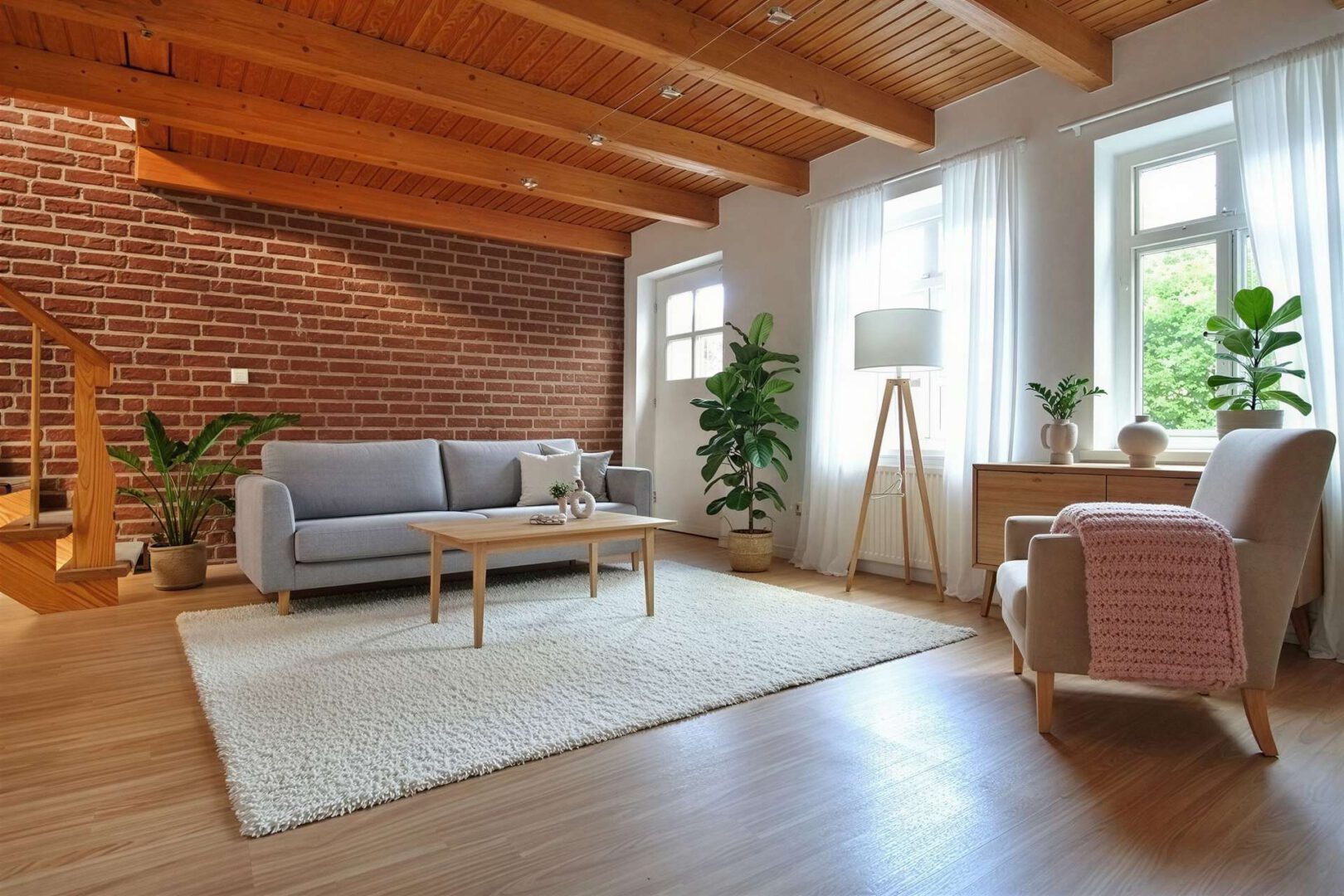 Über eine massive Holztreppe im Wohnbereich erreichen Sie die obere Wohnebene. Ein kleiner Flur erschließt dort das gemütliche Schlafzimmer.