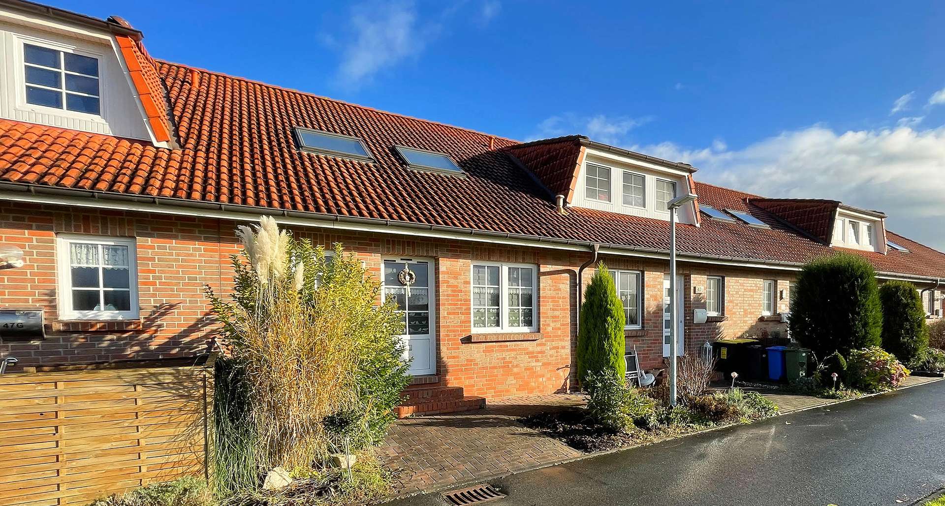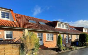 Der durchdachte Grundriss, die kurze Entfernung zum Ortskern von Hage sowie die gute Infrastruktur dieses Reihenhauses bieten einen hohen Wohnwert. Die wohl überlegte Raumaufteilung bietet im Erdgeschoss eine Küche mit Einbauküche, ein Wohnzimmer, ein geräumiges Gäste-WC und einen Abstellraum. Die schwarze Hochglanz-Einbauküche über Eck fügt sich harmonisch in den Raum ein. Auch Platz für eine kleine Essecke ist hier vorhanden. Das Wohnzimmer wirkt durch die große Fensterfront hell und freundlich und bietet außerdem einen Ausgang auf die südöstlich ausgerichtete Terrasse. Im Dachgeschoss befinden sich drei Schlafzimmer, die Ihren Wünschen entsprechend zur Verfügung stehen. Egal ob als Kinder-, Arbeits- oder Gästezimmer: Durch den guten Schnitt lassen sich diese drei Räume optimal und kinderleicht einrichten. Des Weiteren sei an dieser Stelle zu erwähnen, dass die drei Schlafzimmer im Dachgeschoss mit einem neuen Bodenbelag versehen wurden. Das Tageslichtbad bietet mit einem WC, einem Waschtisch, einer Dusche und einer Badewanne den gewohnten Komfort. Ein Abstellraum, in welchem auch die Gasbrennwerttherme aus dem Jahr 2009 untergebracht ist, komplettiert diese Wohnebene. Ein PKW-Stellplatz befindet sich keine 50m vom Haus entfernt.