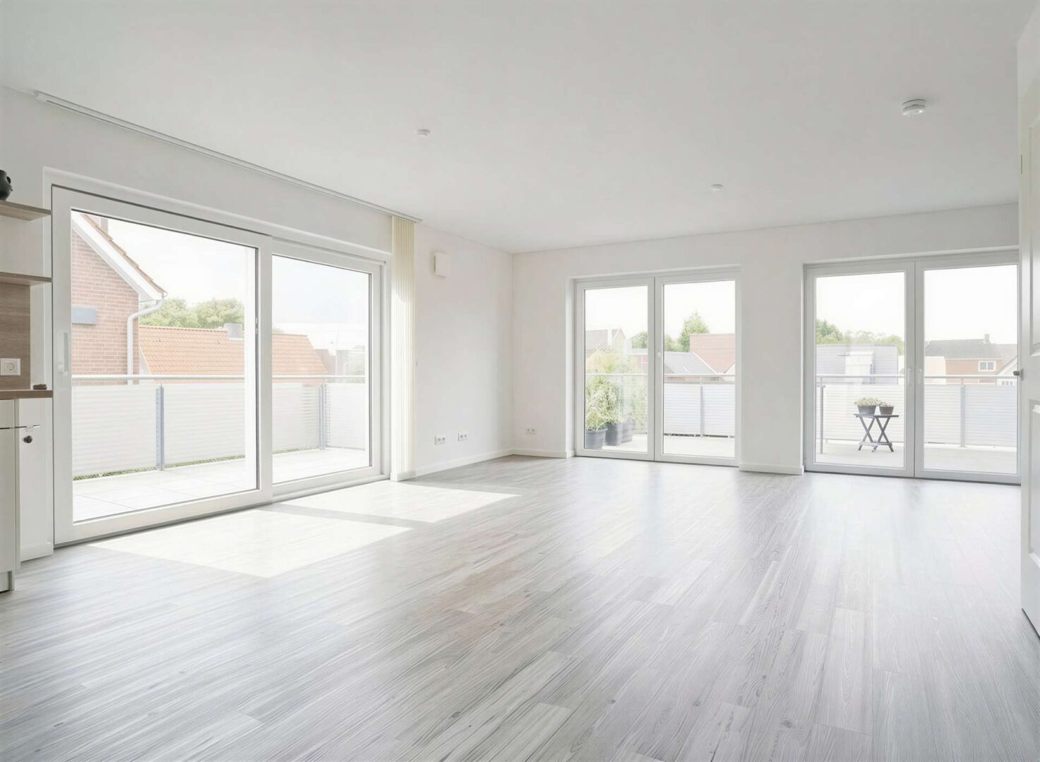 Die Wohnung befindet sich im 2. OG des Gebäudes und ist dank eines Personenaufzuges bequem zu erreichen. Der gut durchdachte und individuelle Grundrisse ermöglicht Ihnen ein kinderleichtes Einrichten der Räume. Der großzügige Wohn- und Essbereich bildet den Mittelpunkt der Wohnung. Eine Einbauküche ist bereits im Mietpreis enthalten. Die überwiegend bodentiefen Fensterelemente sorgen für ein helles und lichtdurchflutetes Ambiente. Alle Fenster, Balkontüren und Schiebetüren verfügen über eine hochwärmegedämmte Dreifachverglasung. Elektrische Außenrollläden bieten zusätzlichen Komfort. Highlights der Wohnung sind auch die beiden Balkone, auf denen Sie die Sonnenstunden voll auskosten können. Über eine Treppe im Wohn- und Essbereich gelangen Sie zu den beiden Schlafzimmern sowie dem Tageslichtbad eine Etage höher. Das moderne Bad verfügt über ein wandhängendes WC, ein Urinal, einen Waschtisch und eine ebenerdig geflieste Dusche.