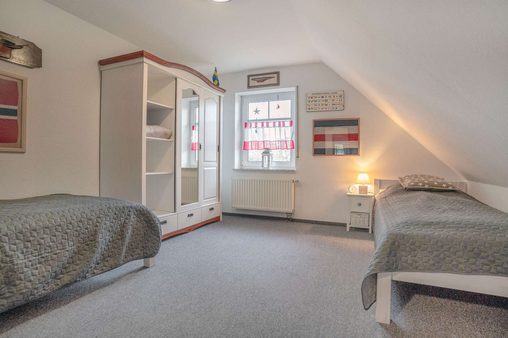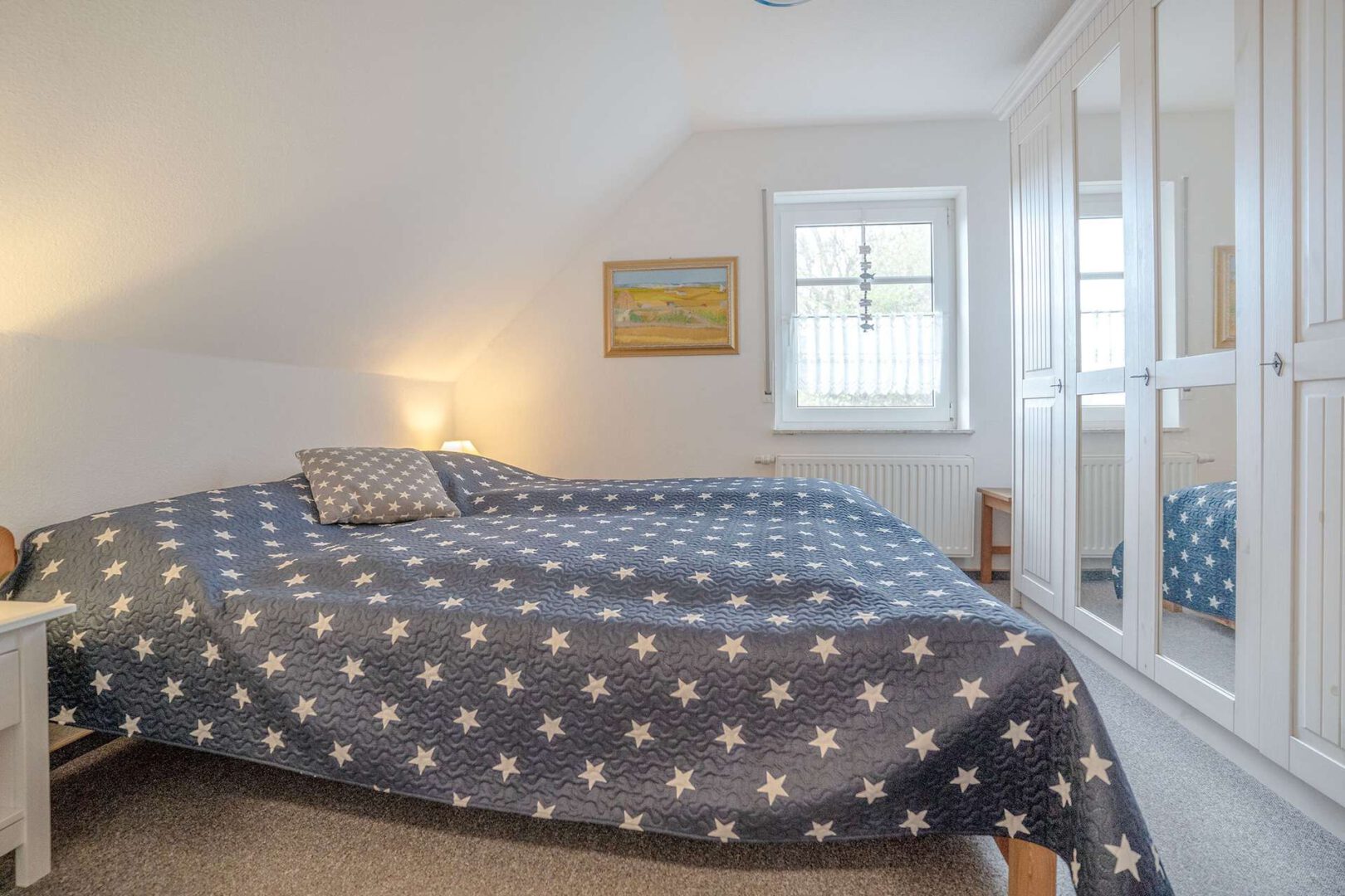 Im Obergeschoss befinden sich zwei gemütliche Schlafzimmer sowie ein Tageslichtbad mit Dusche. Der Dachboden bietet zusätzlichen Stauraum, der sich flexibel nutzen lässt. Für Komfort sorgen unter anderem eine neuwertige Gasbrennwerttherme von 2022, Fußbodenerwärmung im Wohnzimmer und Außenrollläden. Abgerundet wird das Angebot durch einen PKW-Außenstellplatz und einen Geräteschuppen.